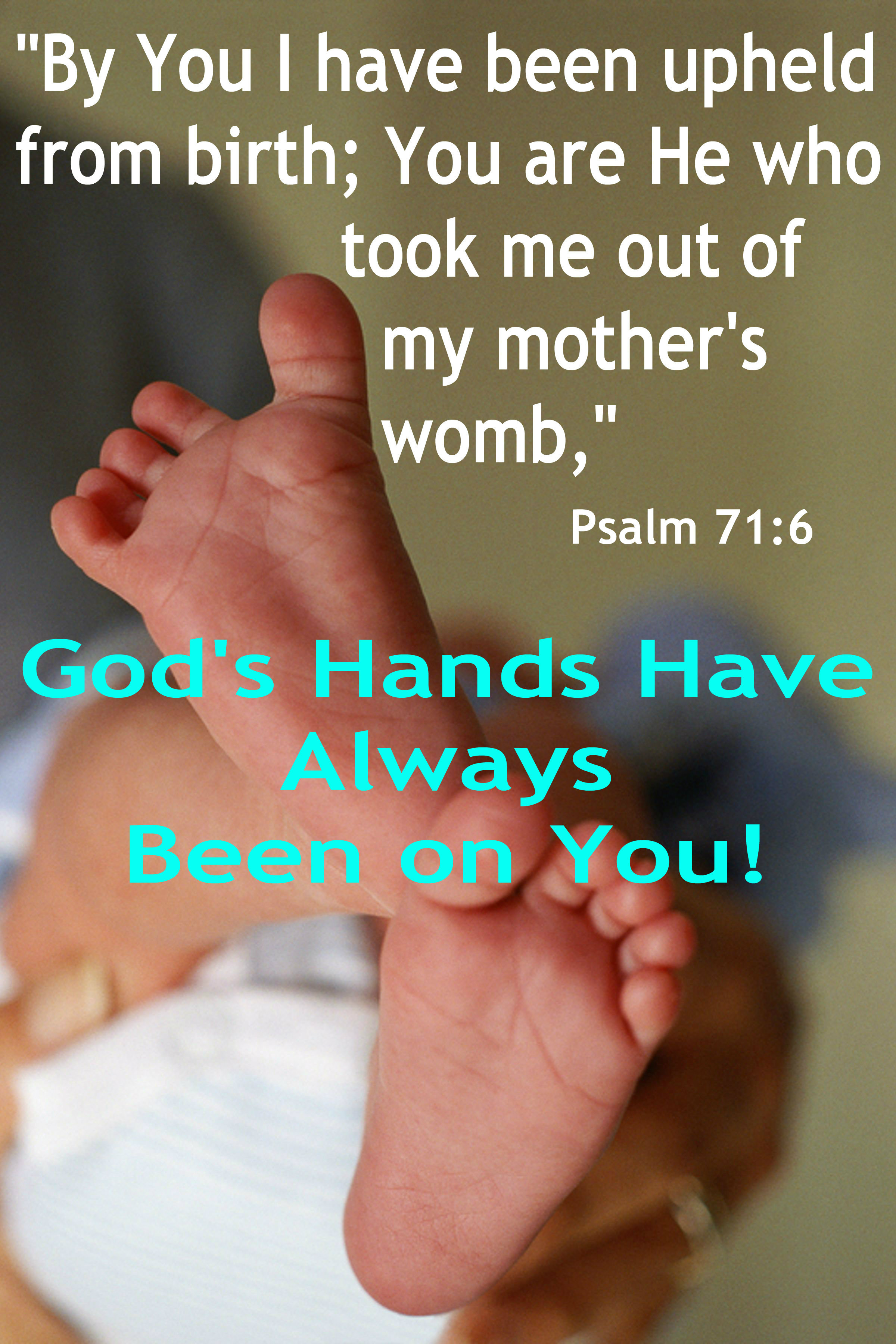 “By You I have been upheld from birth; You are He who took me out of my mother’s womb. My praise shall be continually of You,” Psalm 71:6, NKJV