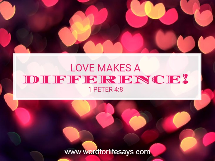 “For charity/love shall cover the multitude of sins.” God’s love, through His Son Jesus, covered a “multitude” of my sins and yours. We are to be imitators of our heavenly Father. Proverbs 10:12 tells us, “Hatred stirreth up strifes: but love covereth all sins.” Both of these verses pronounce love as a covering. It’s not that we don’t see, feel or hurt at the wrongs of others, it’s all about what we choose to do with it. Much like God (although we can never touch the capacity of His love), our love is to be so on-fire for one another that it causes us to look beyond the faults of others and see to the core of their very need. That’s how love makes a difference!